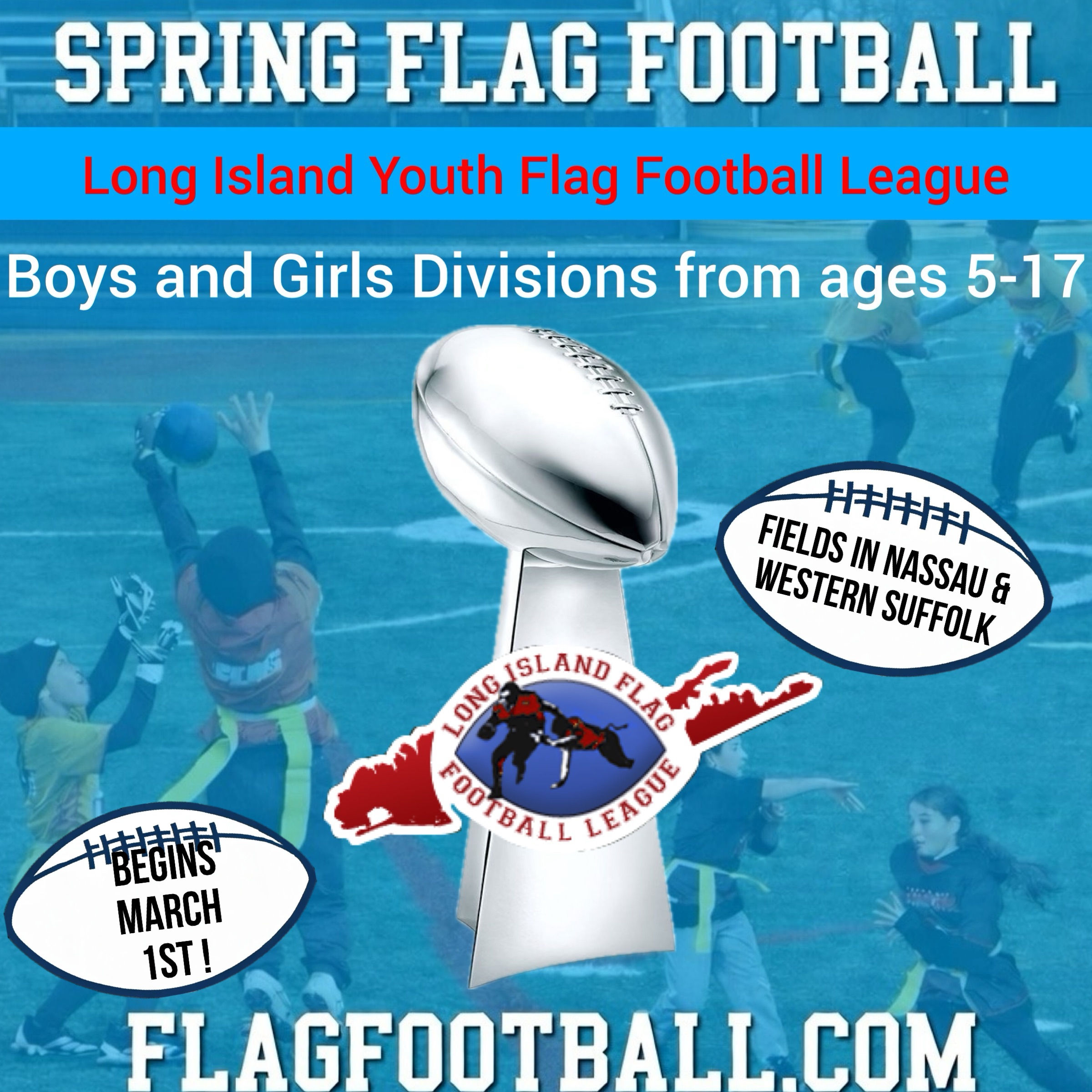 The NFL FLAG Program of Oyster Bay Town along with the Long Island Flag Football League will once again for our 29th year offer zero-contact NFL